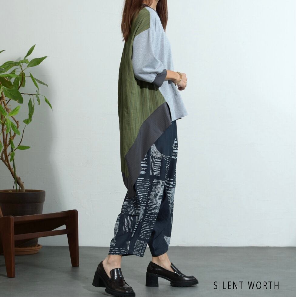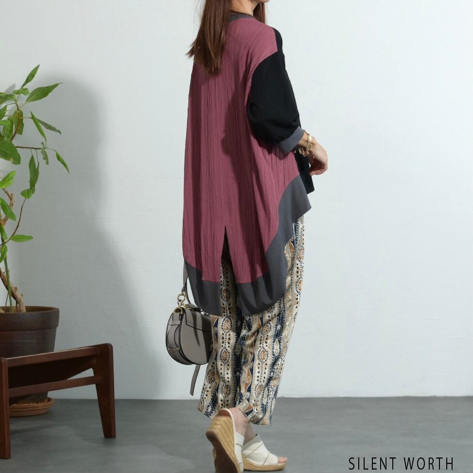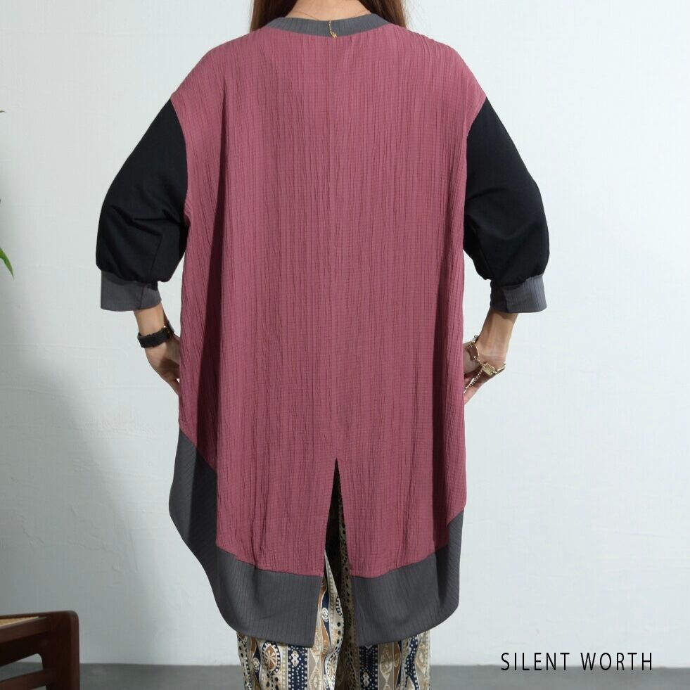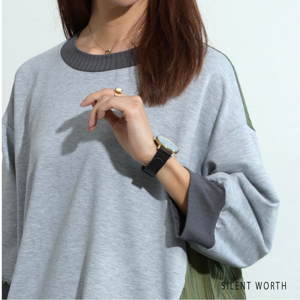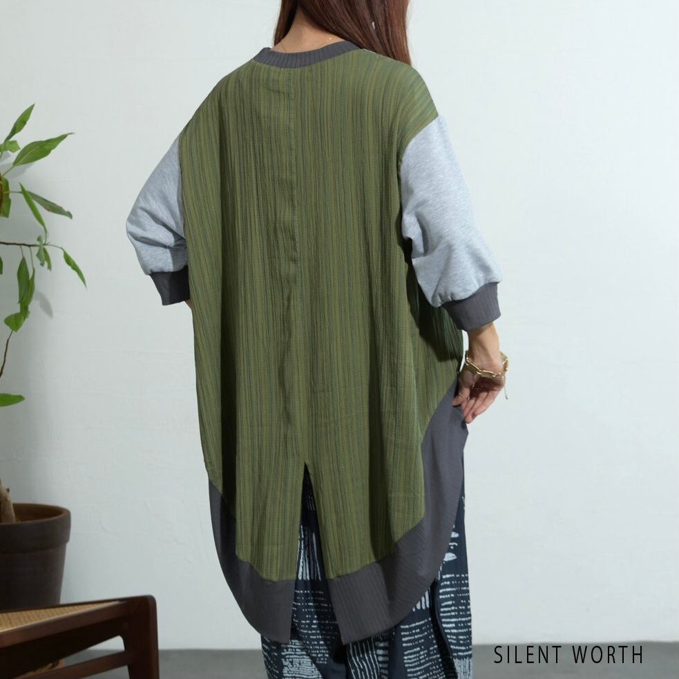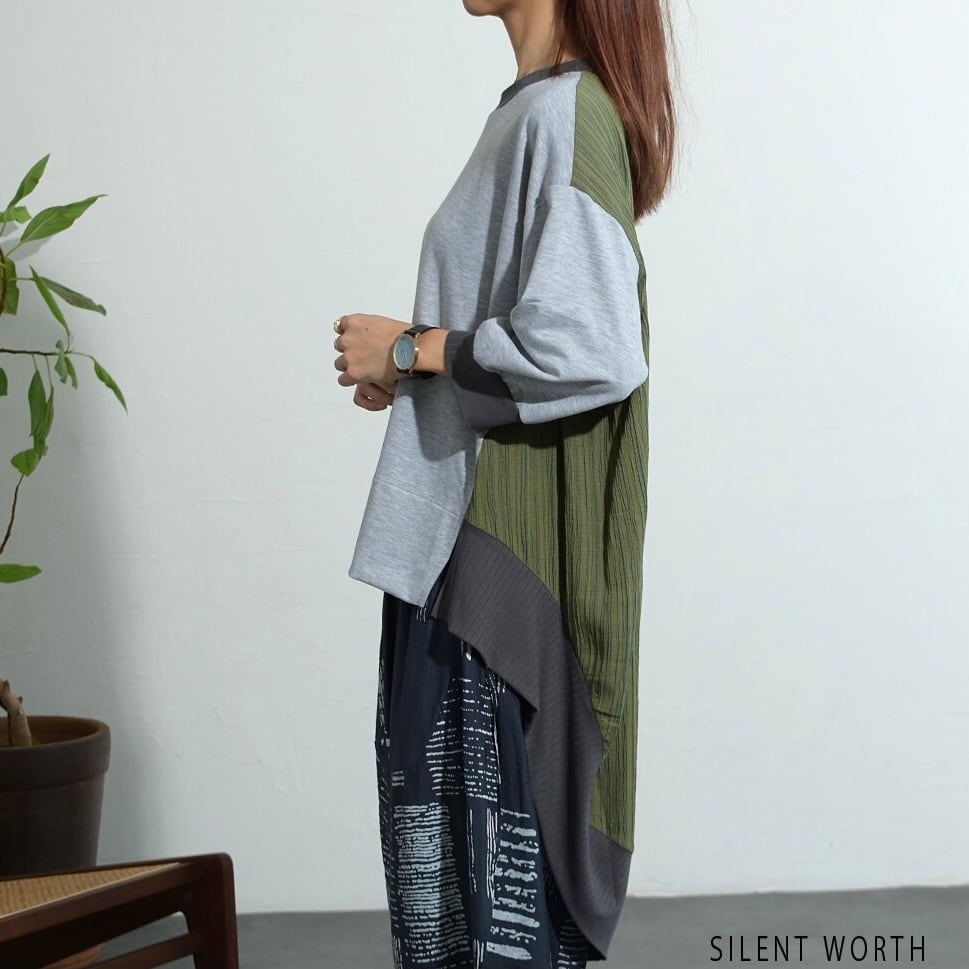 【SILENT WORTH】異素材配色ロングテールプルオーバー Z-097