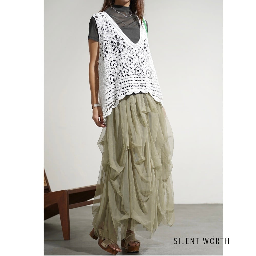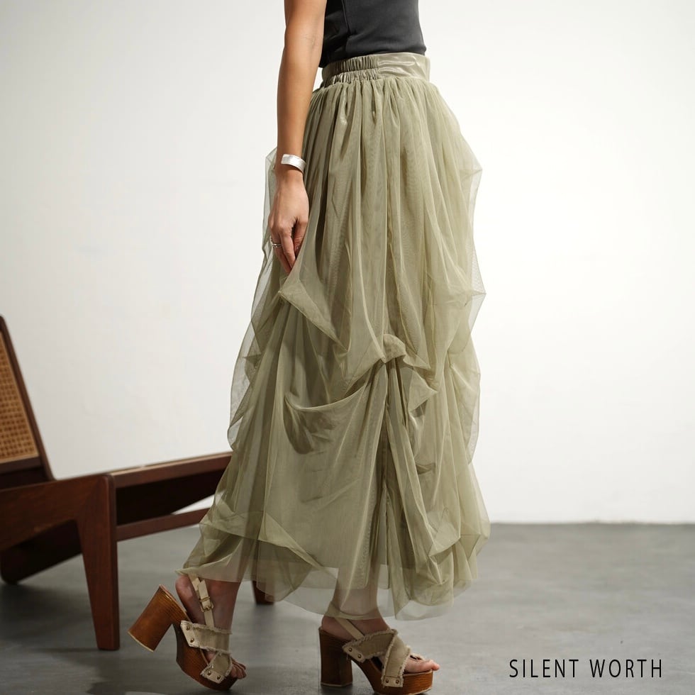 【SILENT WORTH】チュールランダムタックスカート N–3144