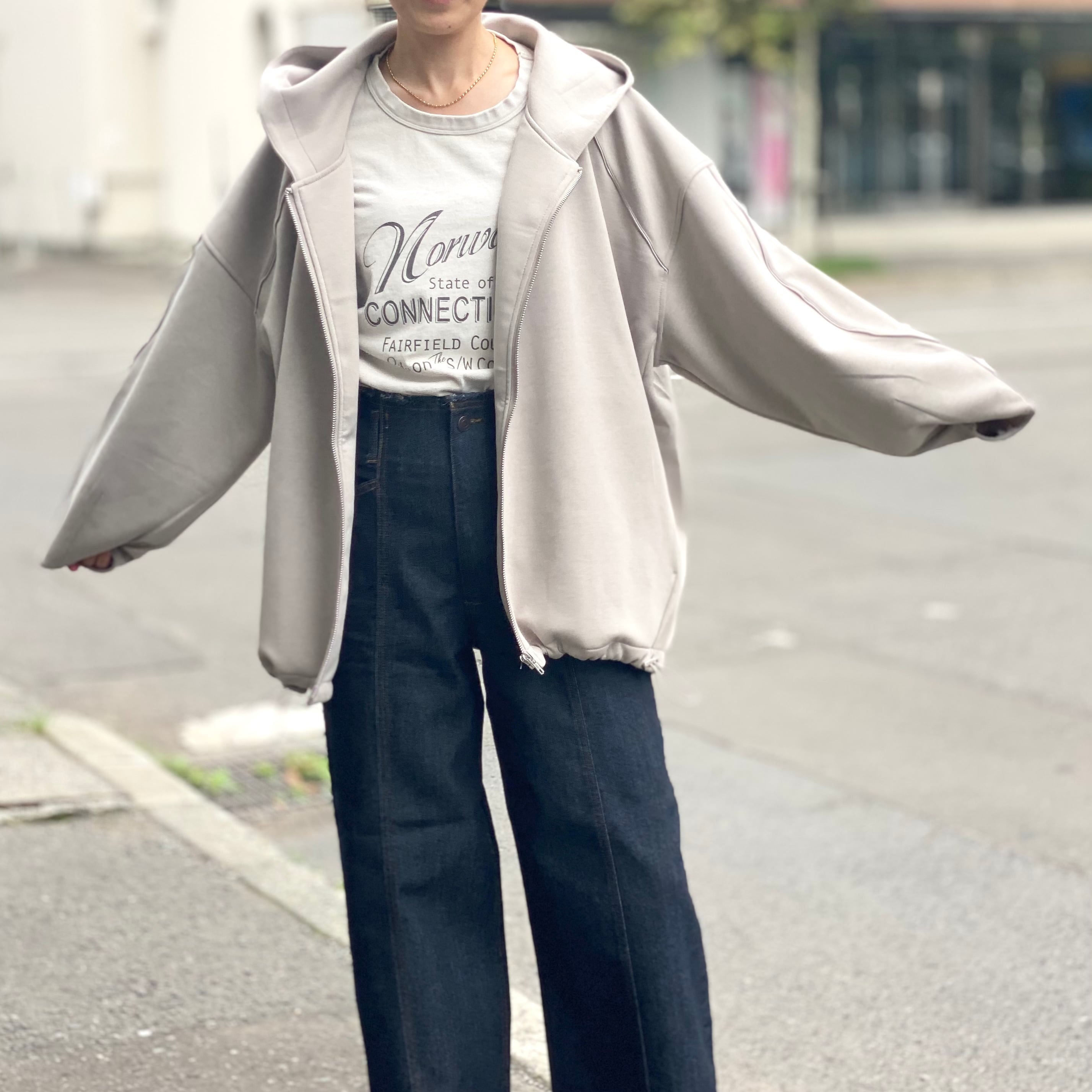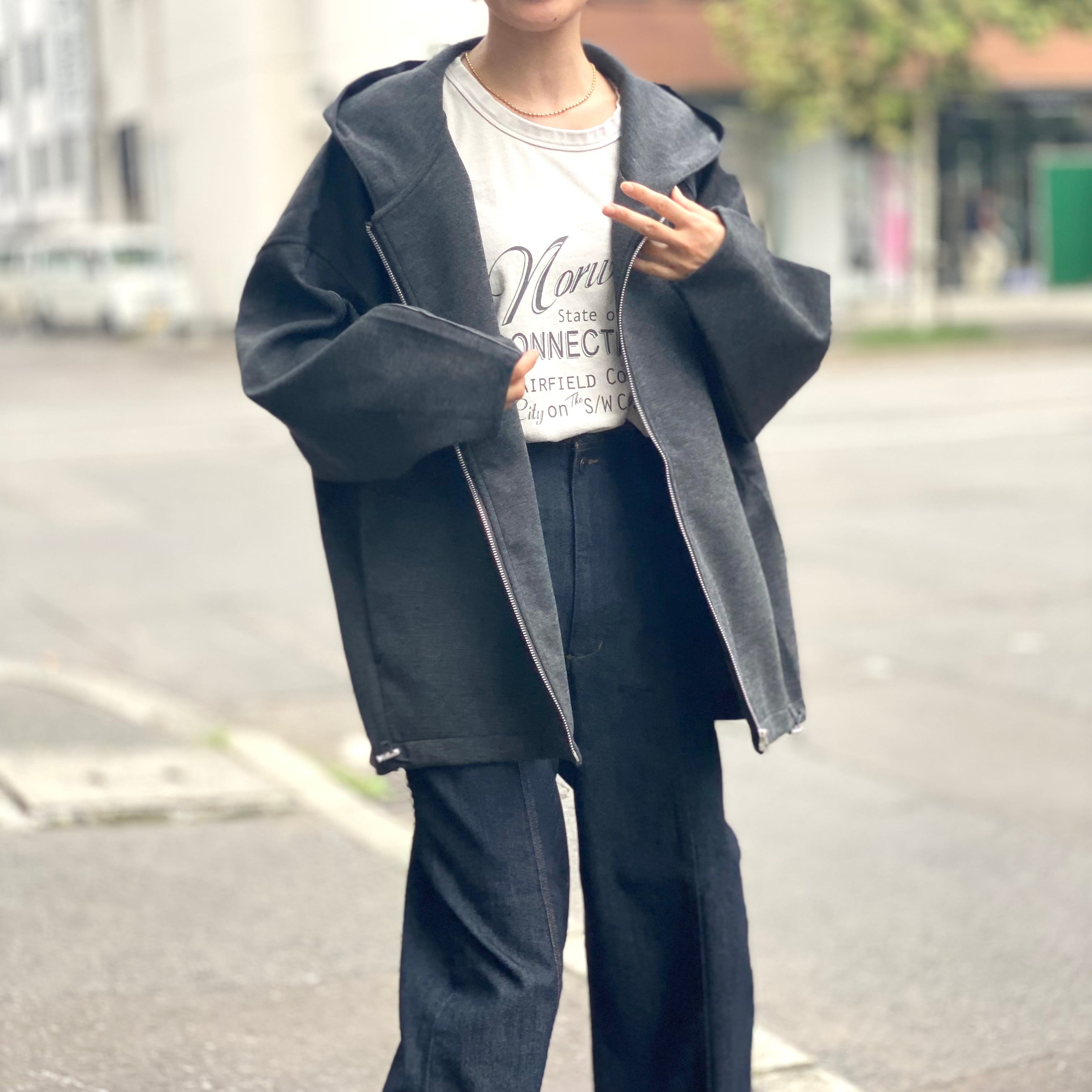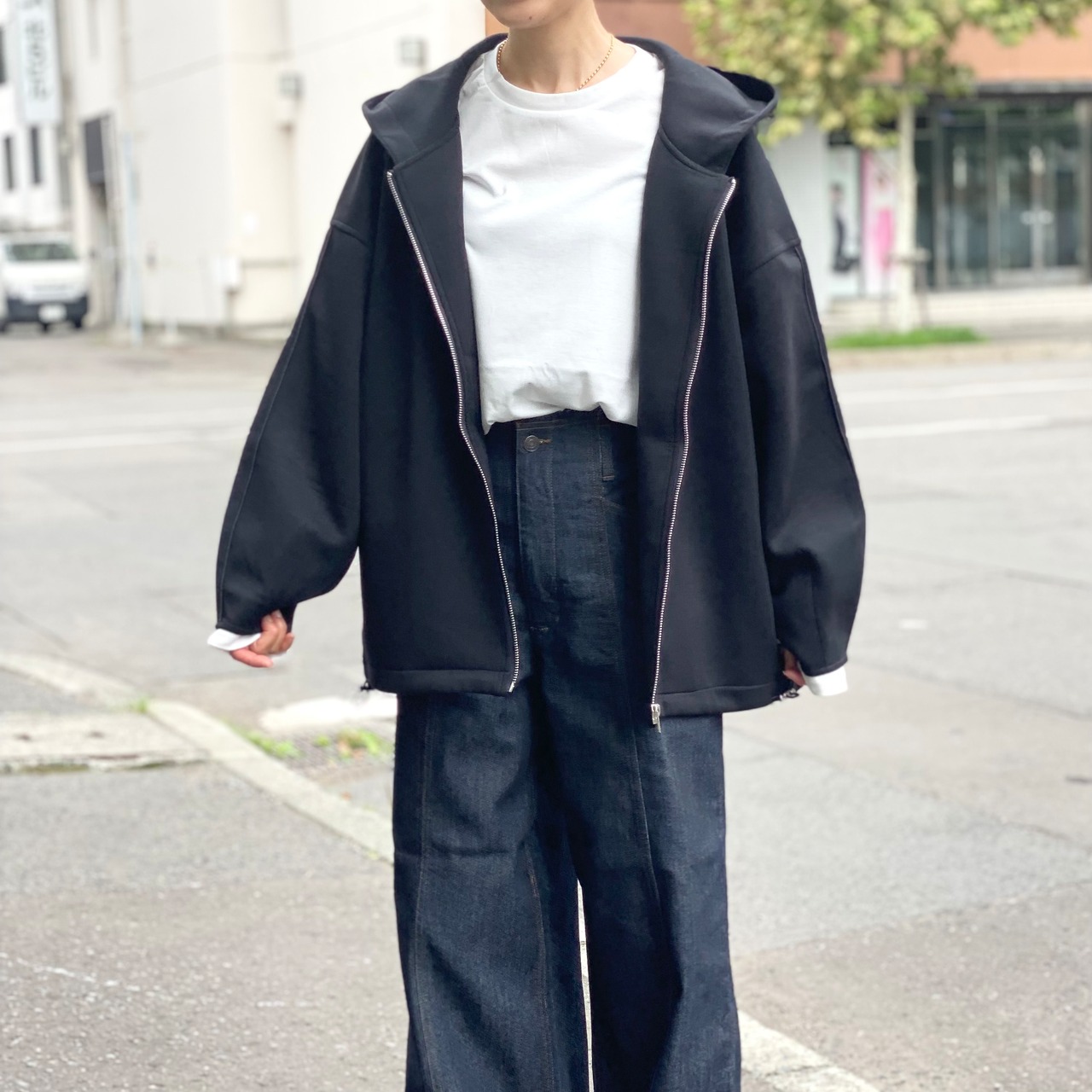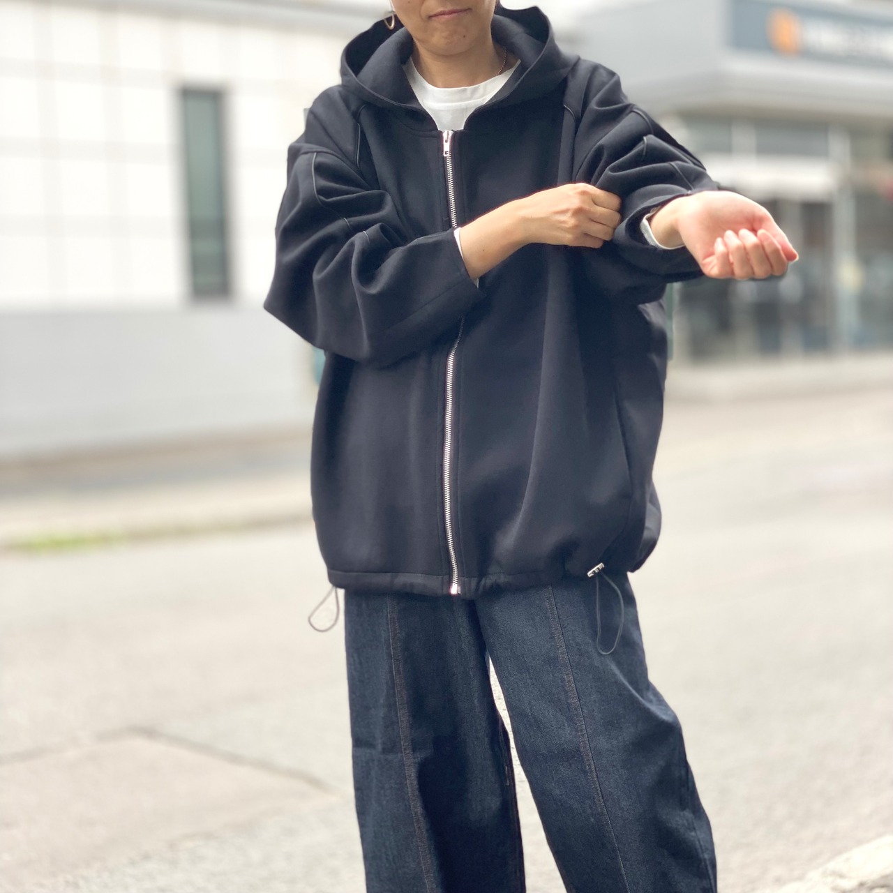 フード付きデザインがコンテンポラリーな雰囲気を演出し、実用性も兼ね備えています◎