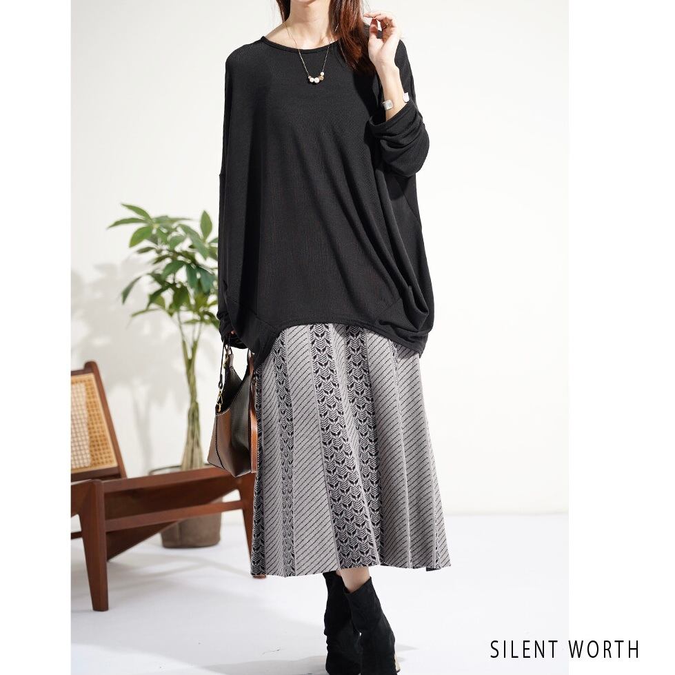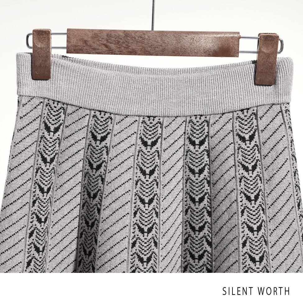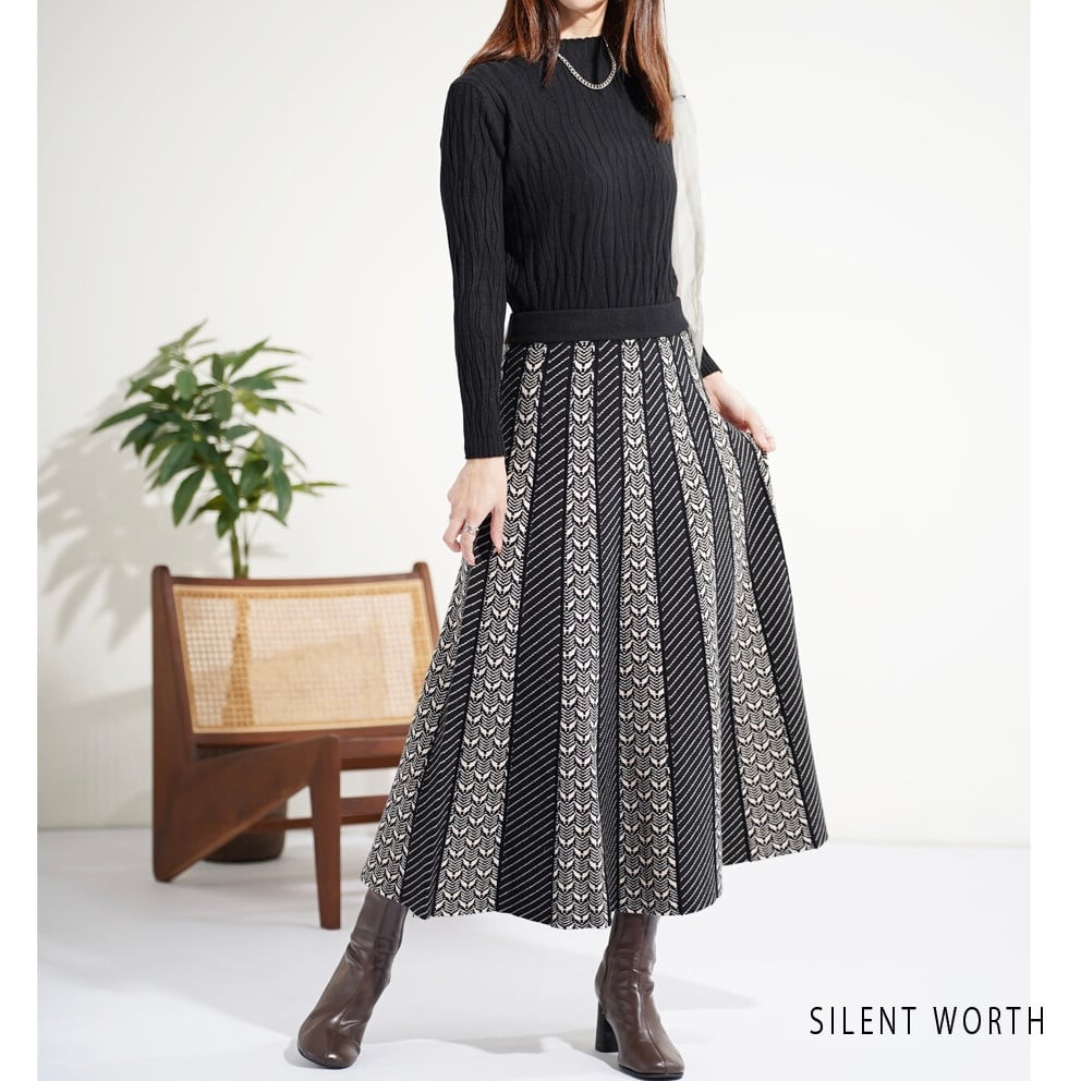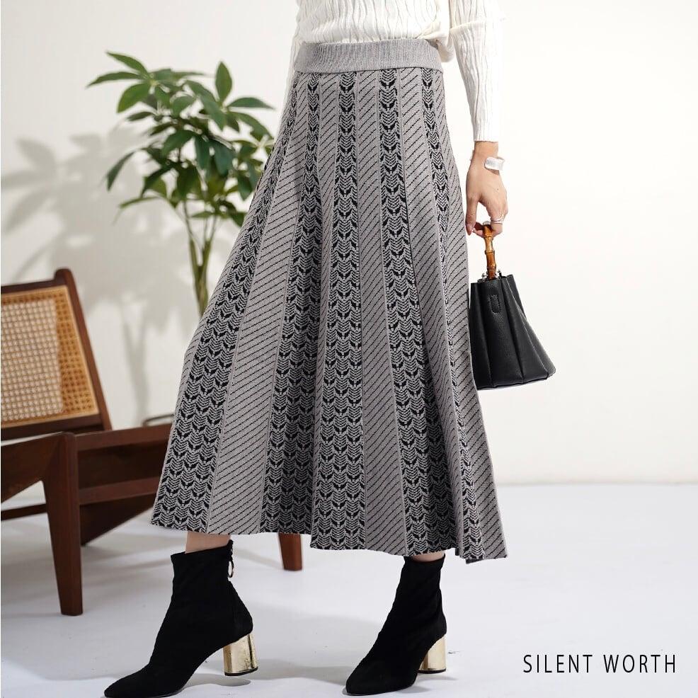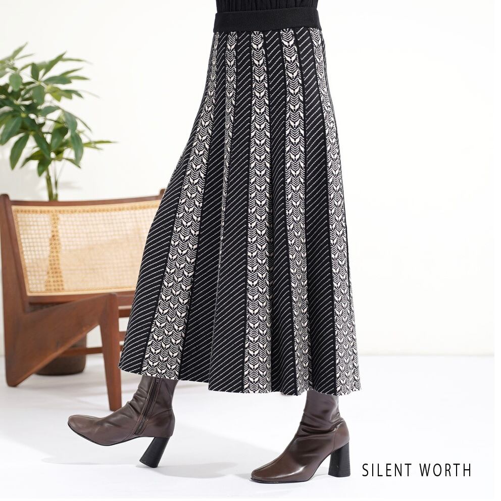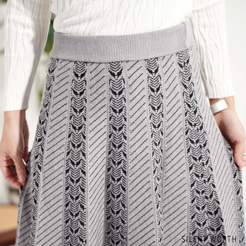 【SILENT WORTH】総柄ニットフレアスカート Y−0191