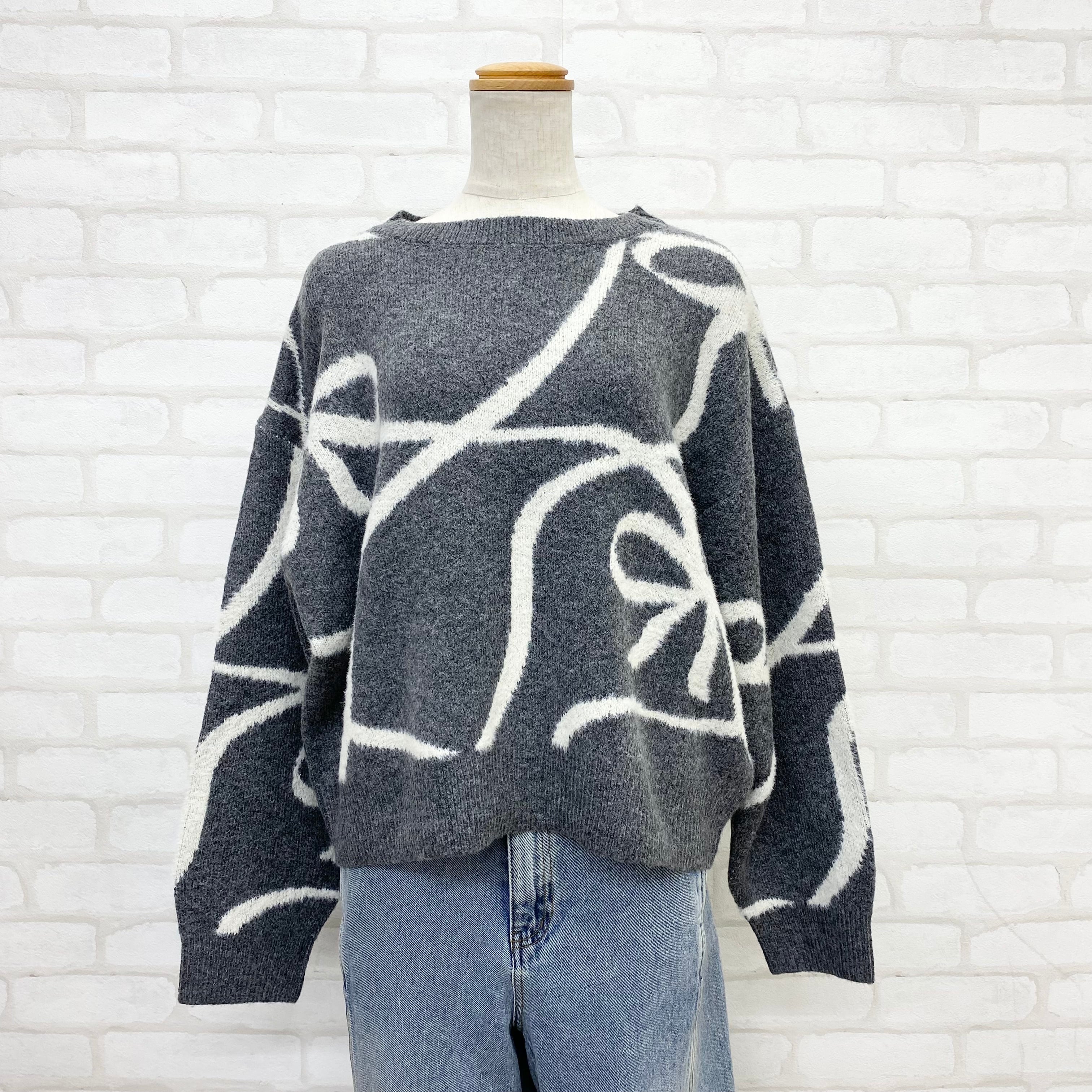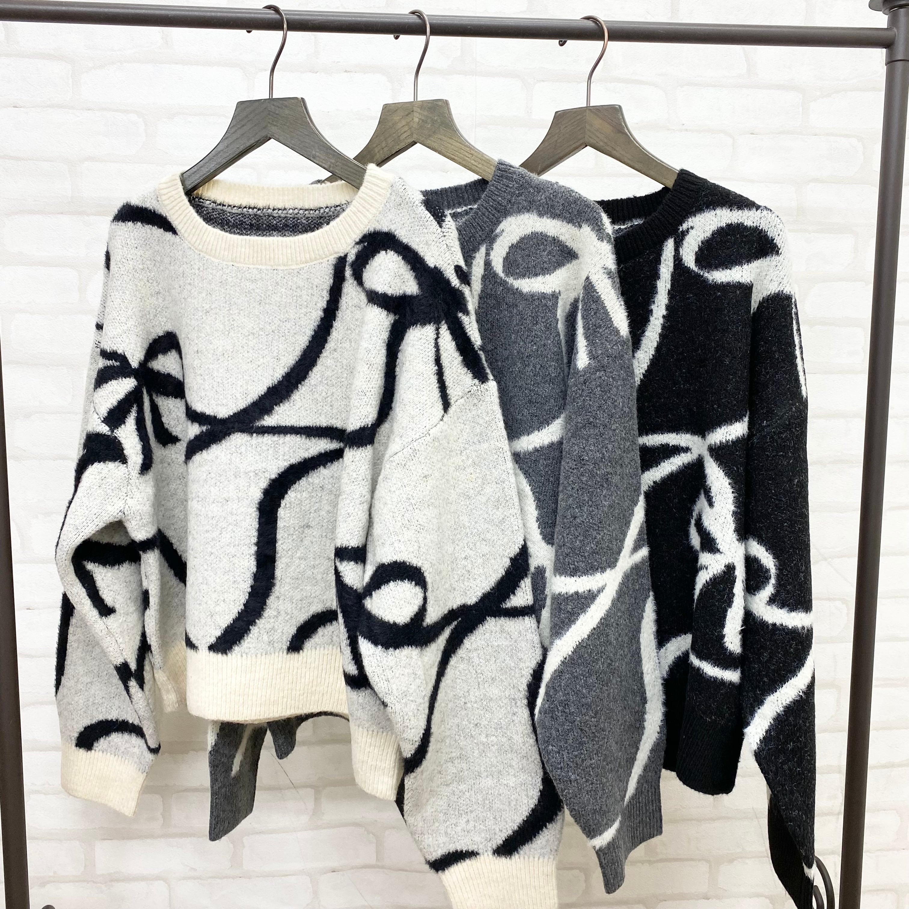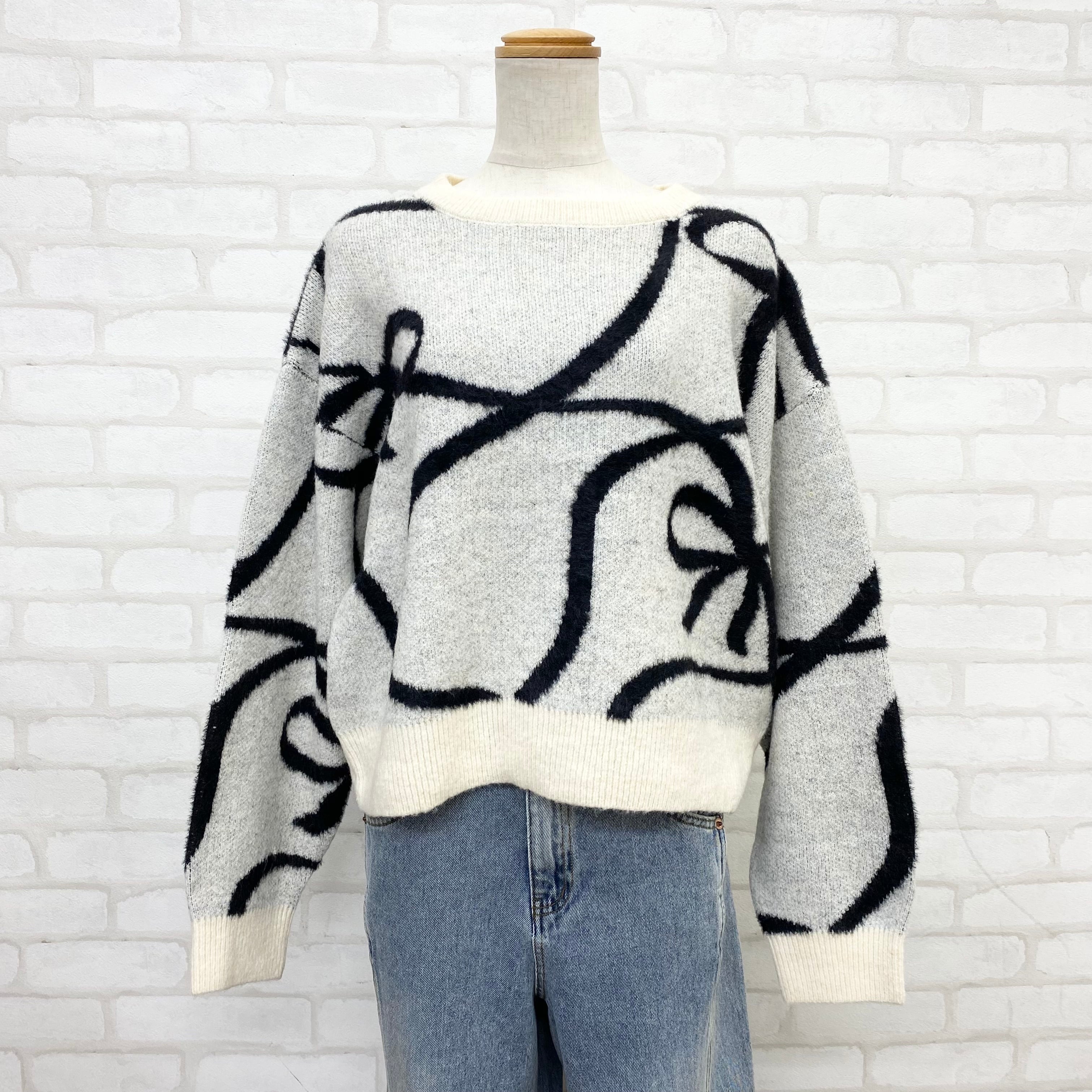 愛らしいリボン柄が目を引く、ふんわりとしたシャギーニットプルオーバーです☆