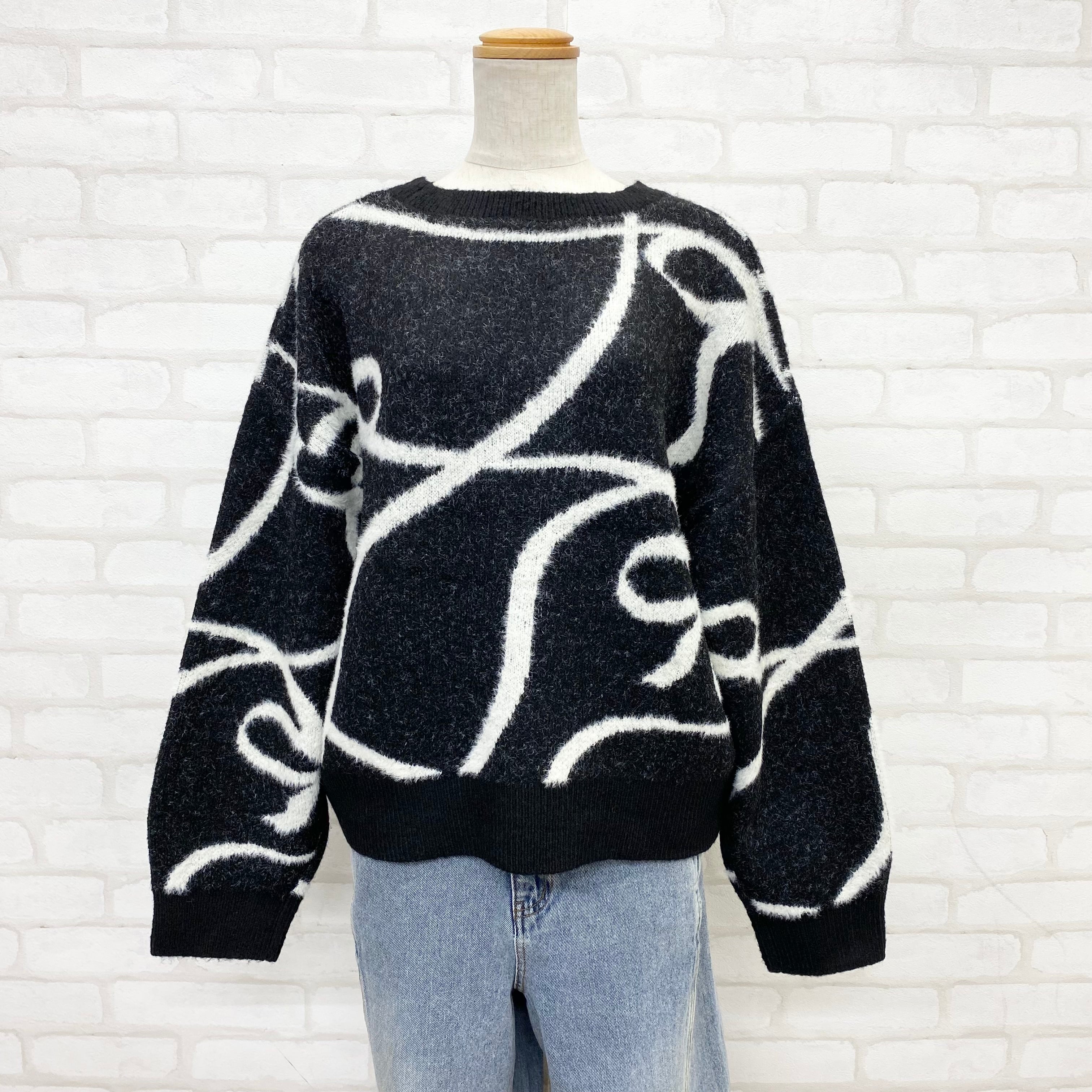 ふんわりウォッシャブルリボン柄シャギーニットPO 24797