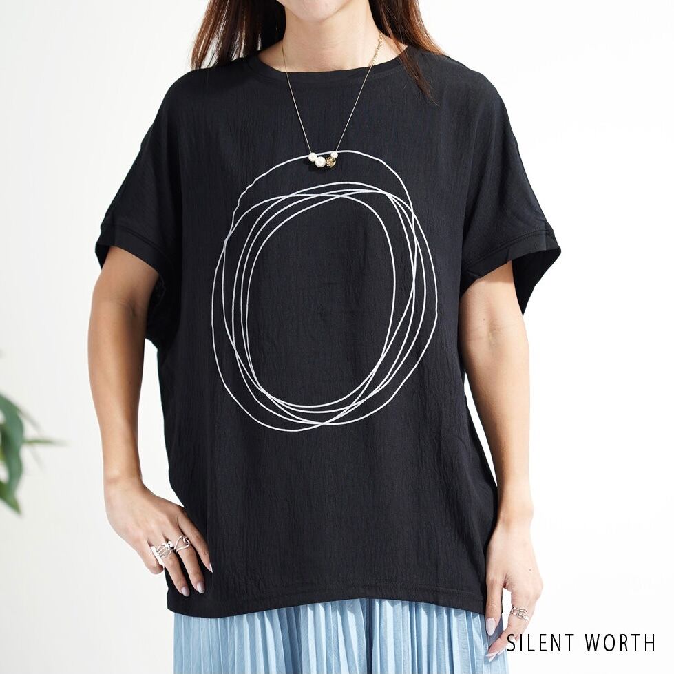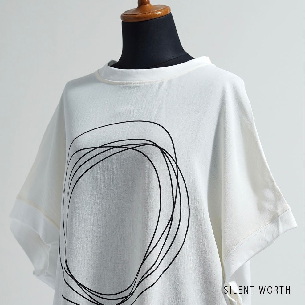 ゆったりとしたフレンチスリーブに、大胆な丸ペイントを重ねたプリントが目を惹く丸ペイントプルオーバーです☆