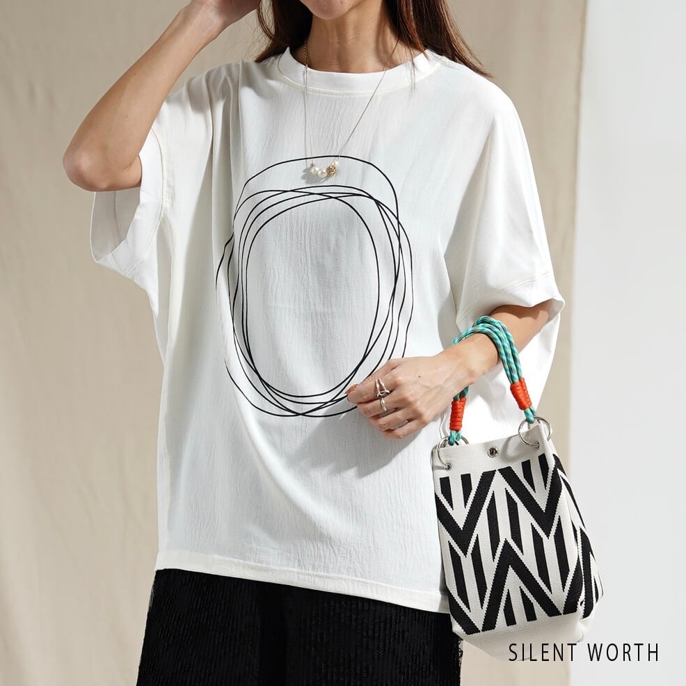 シンプルな中にアート感のあるプリント柄が際立ち、装いに程よい遊び心を添えます♪