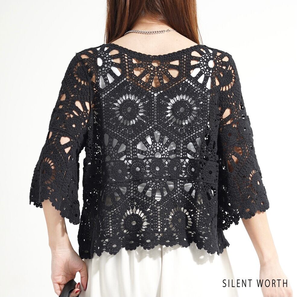 上品な透け感が装いに華やぎを添え、襟元や裾、袖口のスカラップ仕上げがやさしい印象を演出◎
