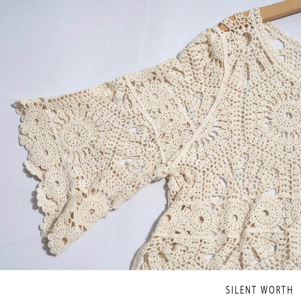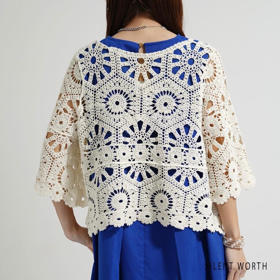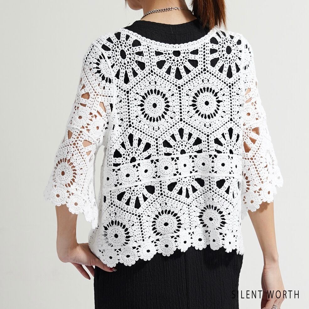 繊細なハニカム柄を丁寧に編み上げた、表情豊かな刺繍レースプルオーバー☆