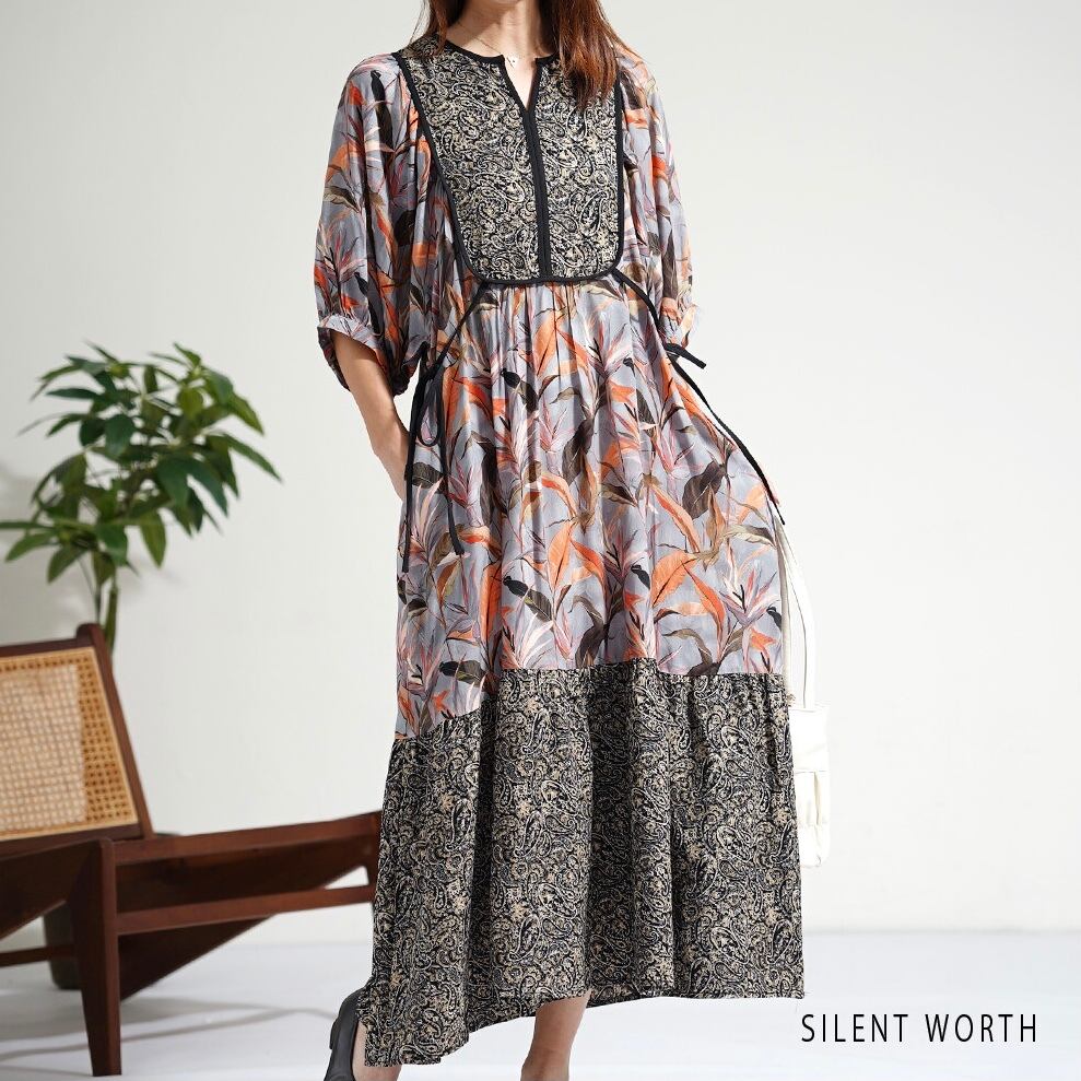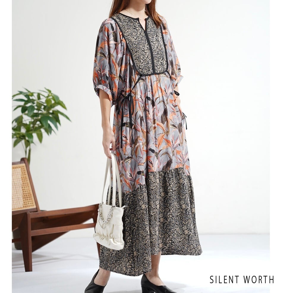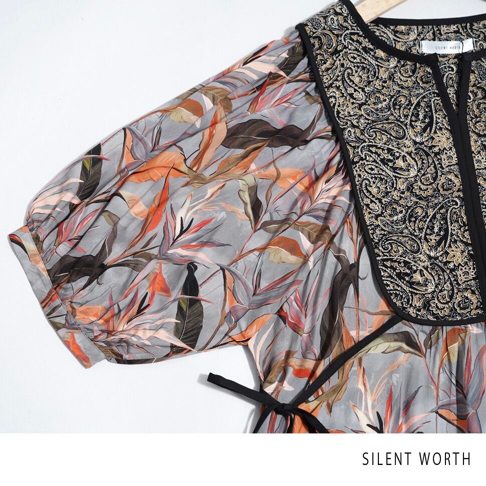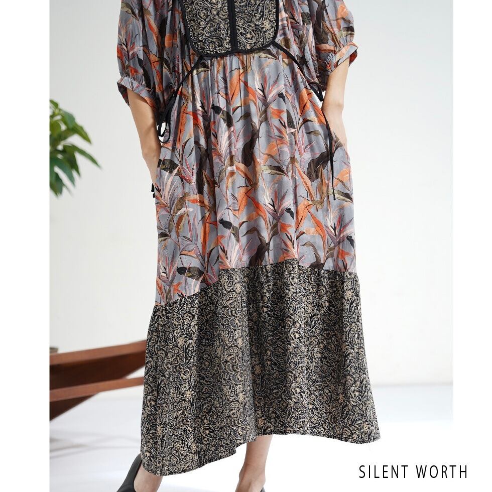 【SILENT WORTH】リーフ柄パッチワークOP C-3729
