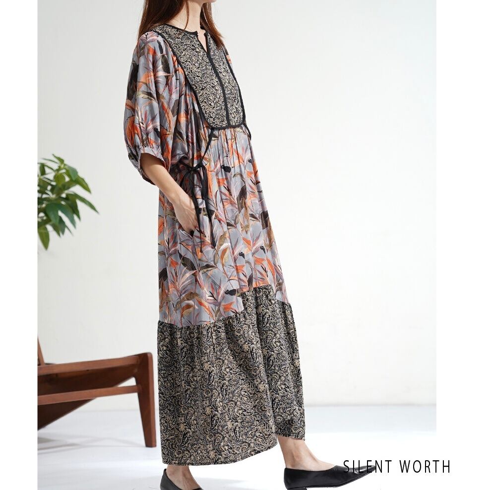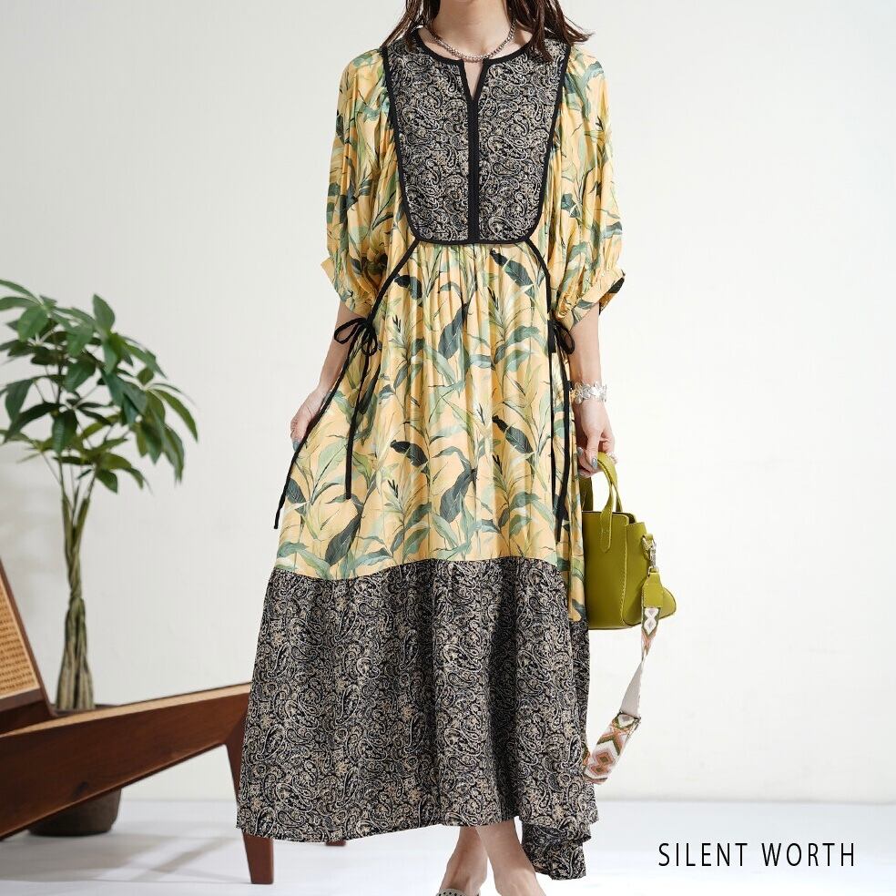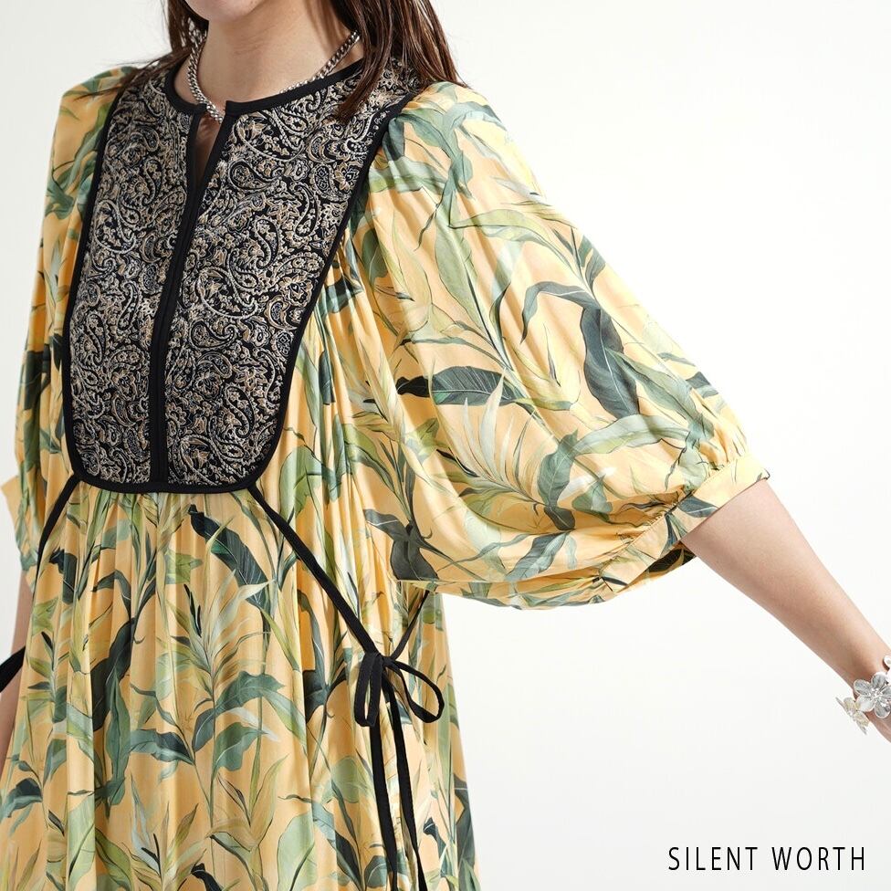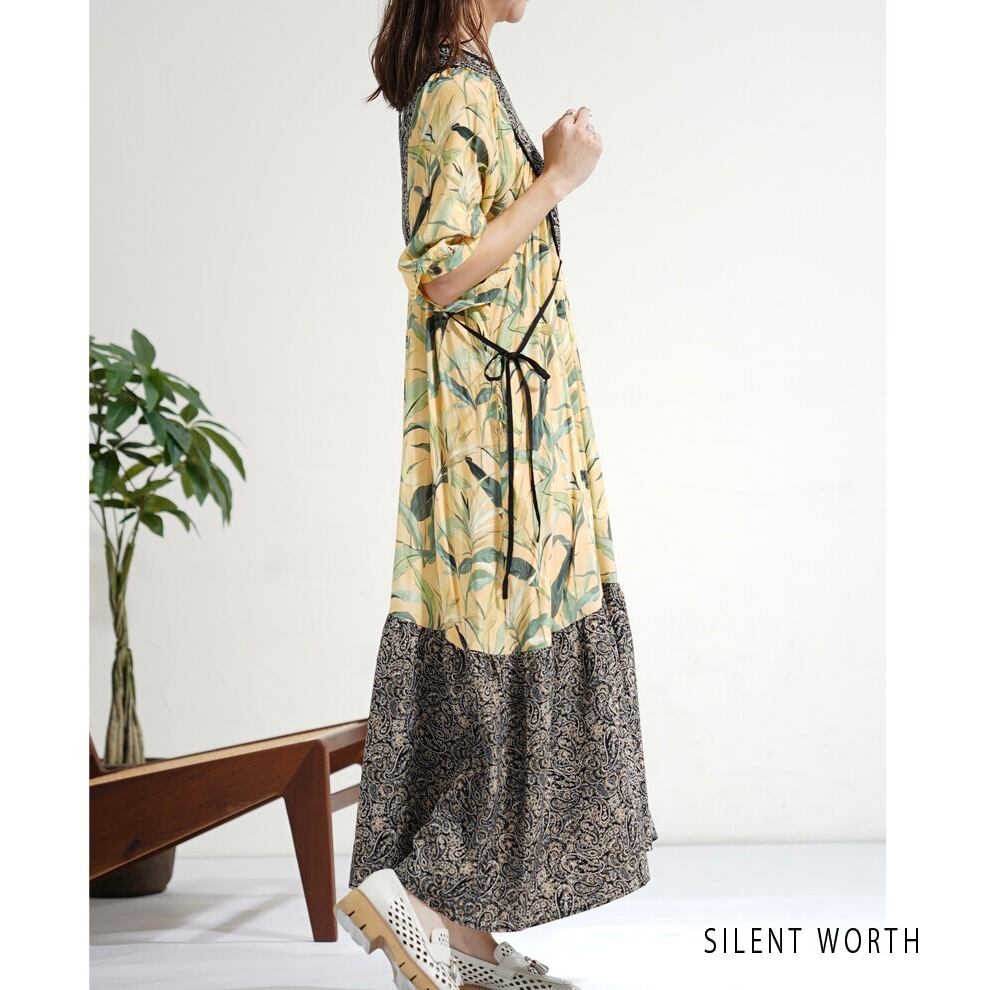 【SILENT WORTH】リーフ柄パッチワークOP C-3729