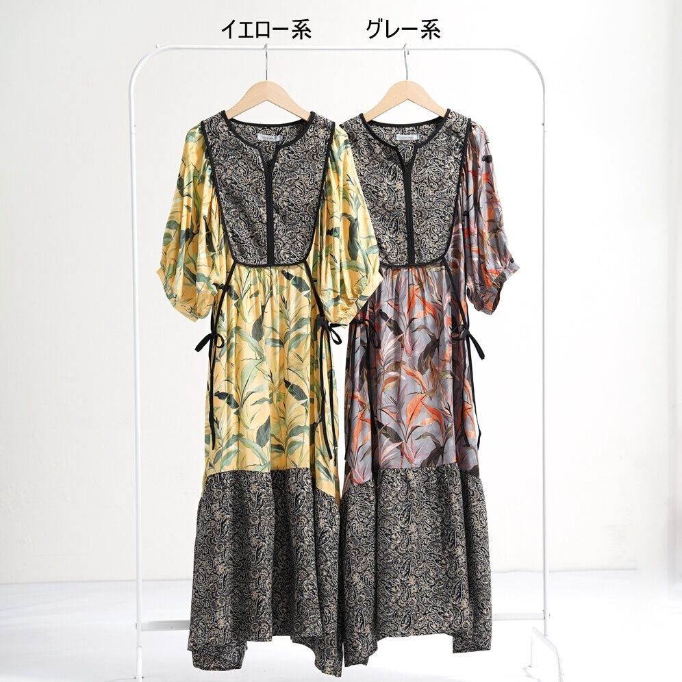 商品名:【SILENT WORTH】リーフ柄パッチワークOP C-3729