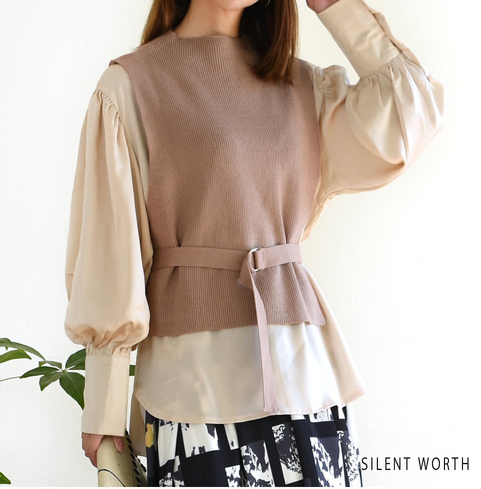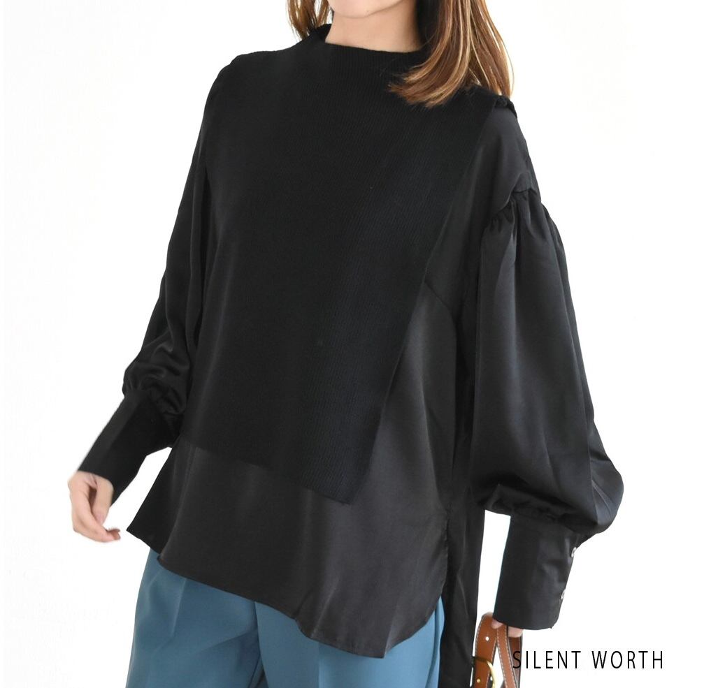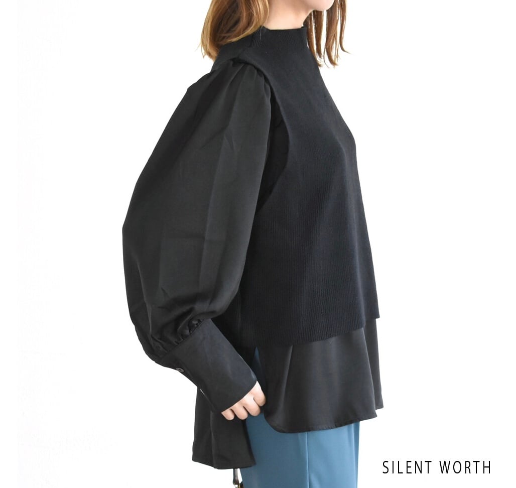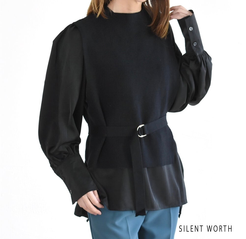 【SILENT WORTH】 3点セット変形ニット×ビックブラウス/n-2245