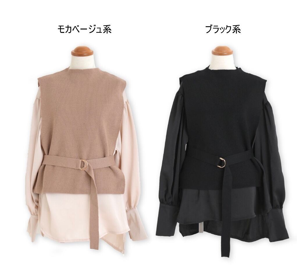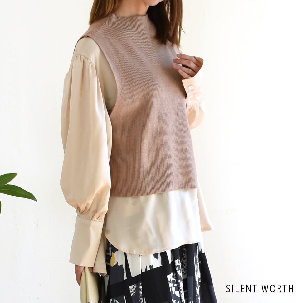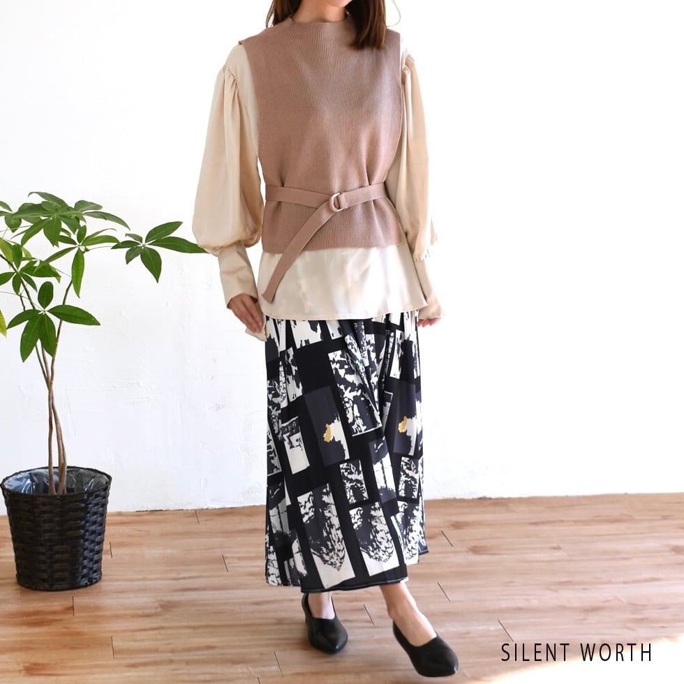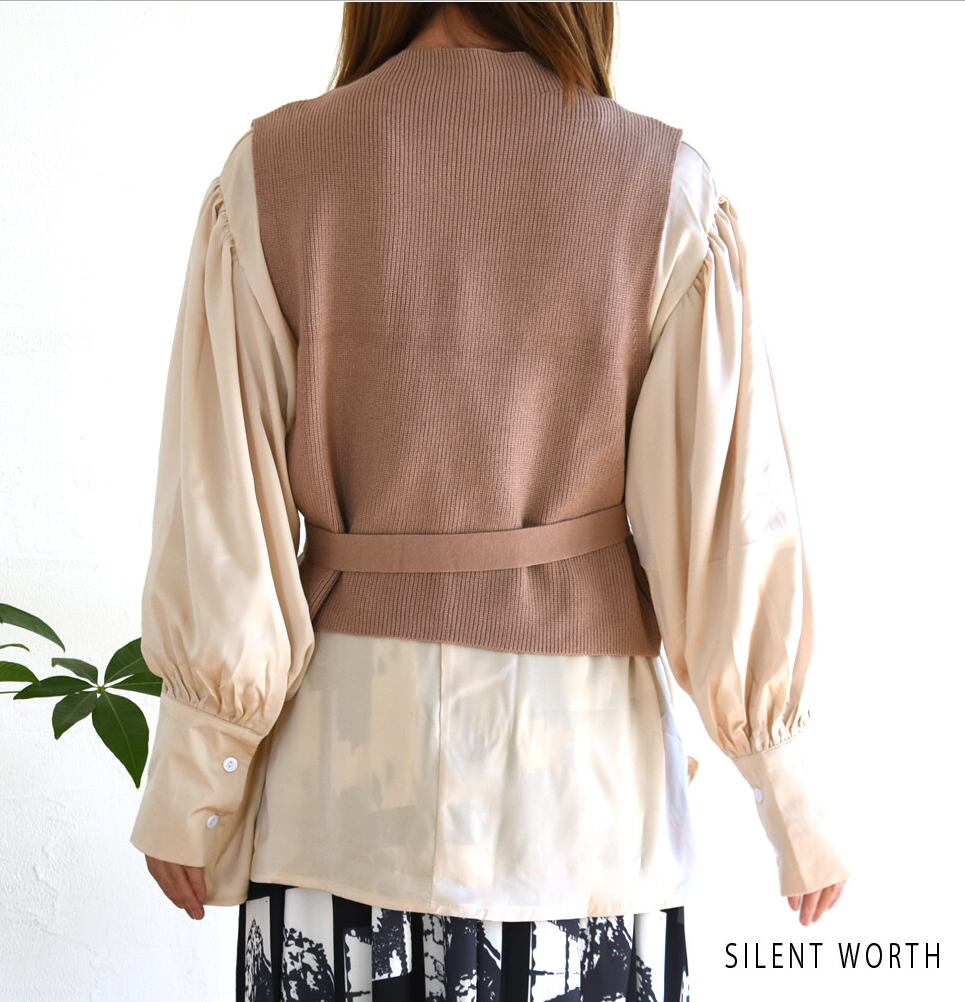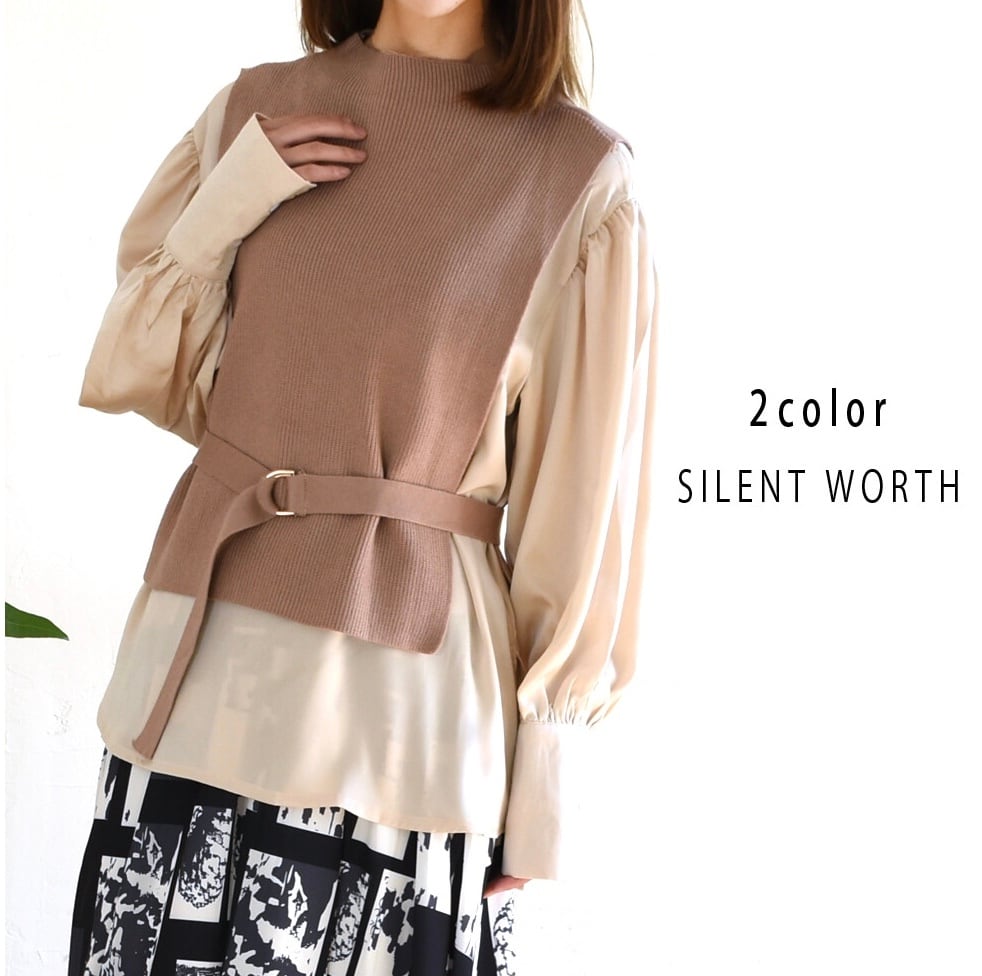 【SILENT WORTH】 3点セット変形ニット×ビックブラウス/n-2245
