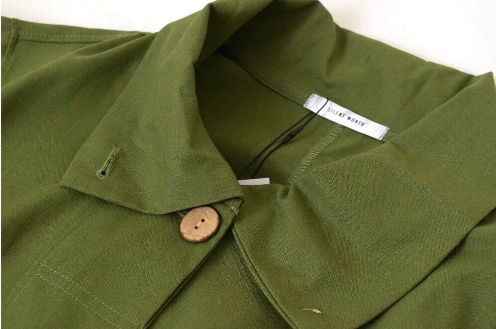 裾が少し広がりデザイン性があり、春先にぴったりな綿麻素材で作られています。