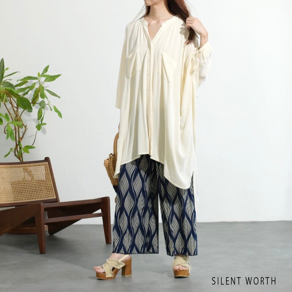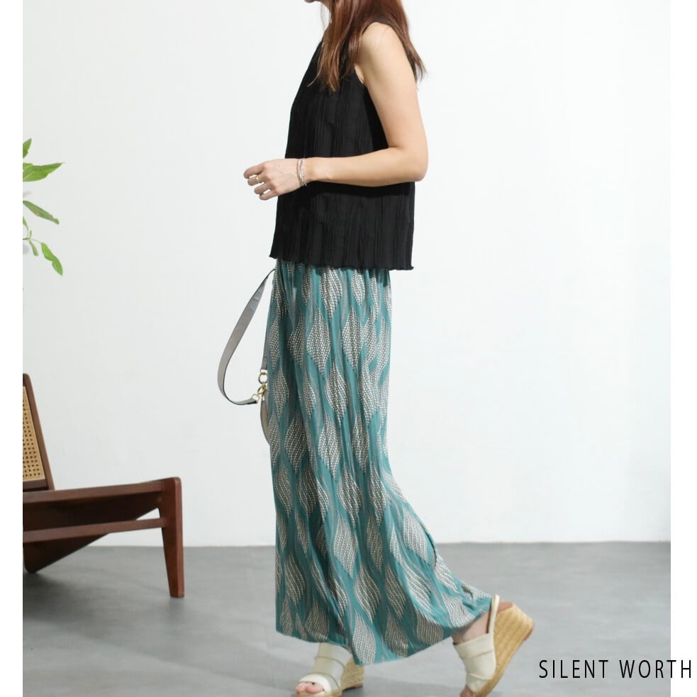 プリーツのようなしわ加工が施されており、シルエットにメリハリをプラスしてくれます◎