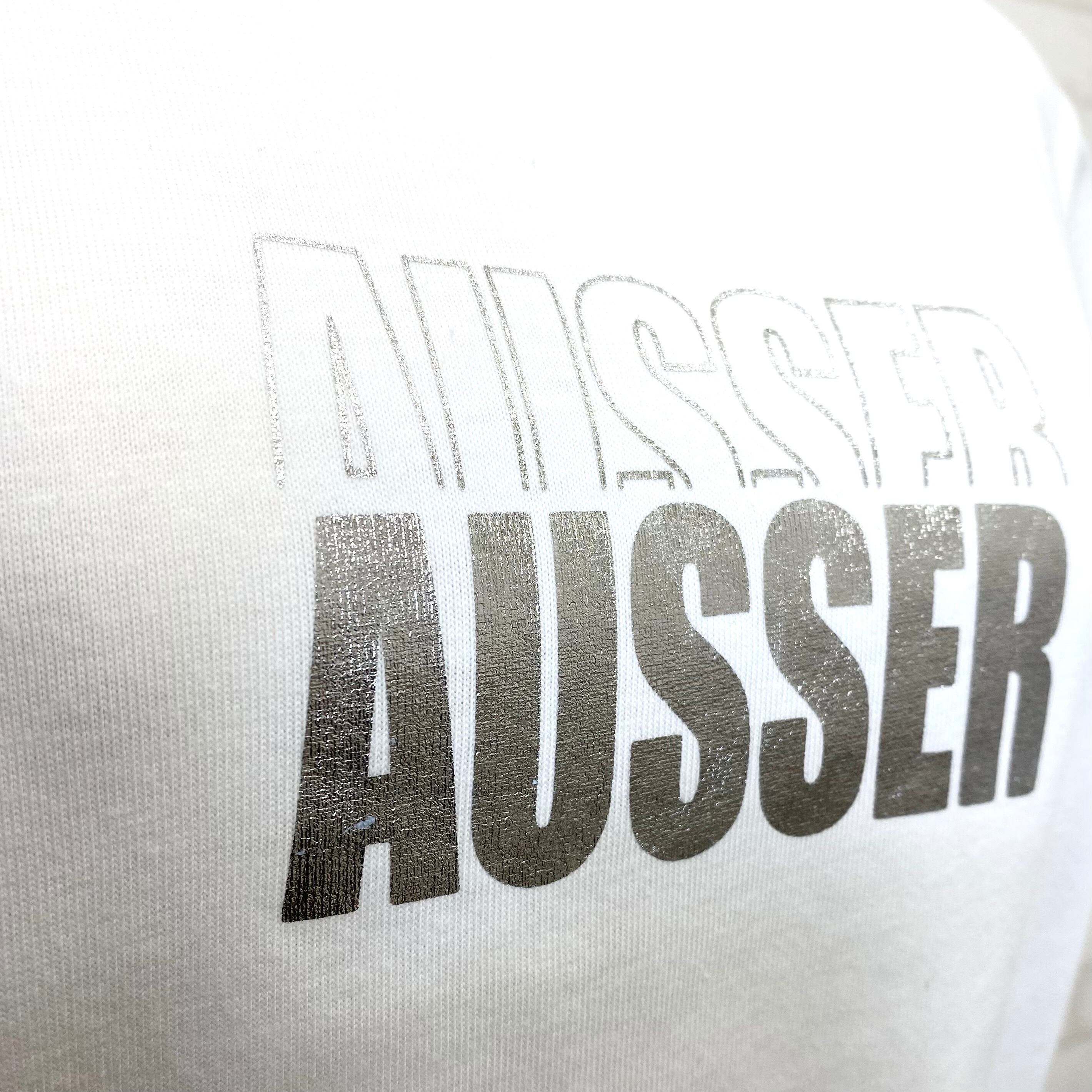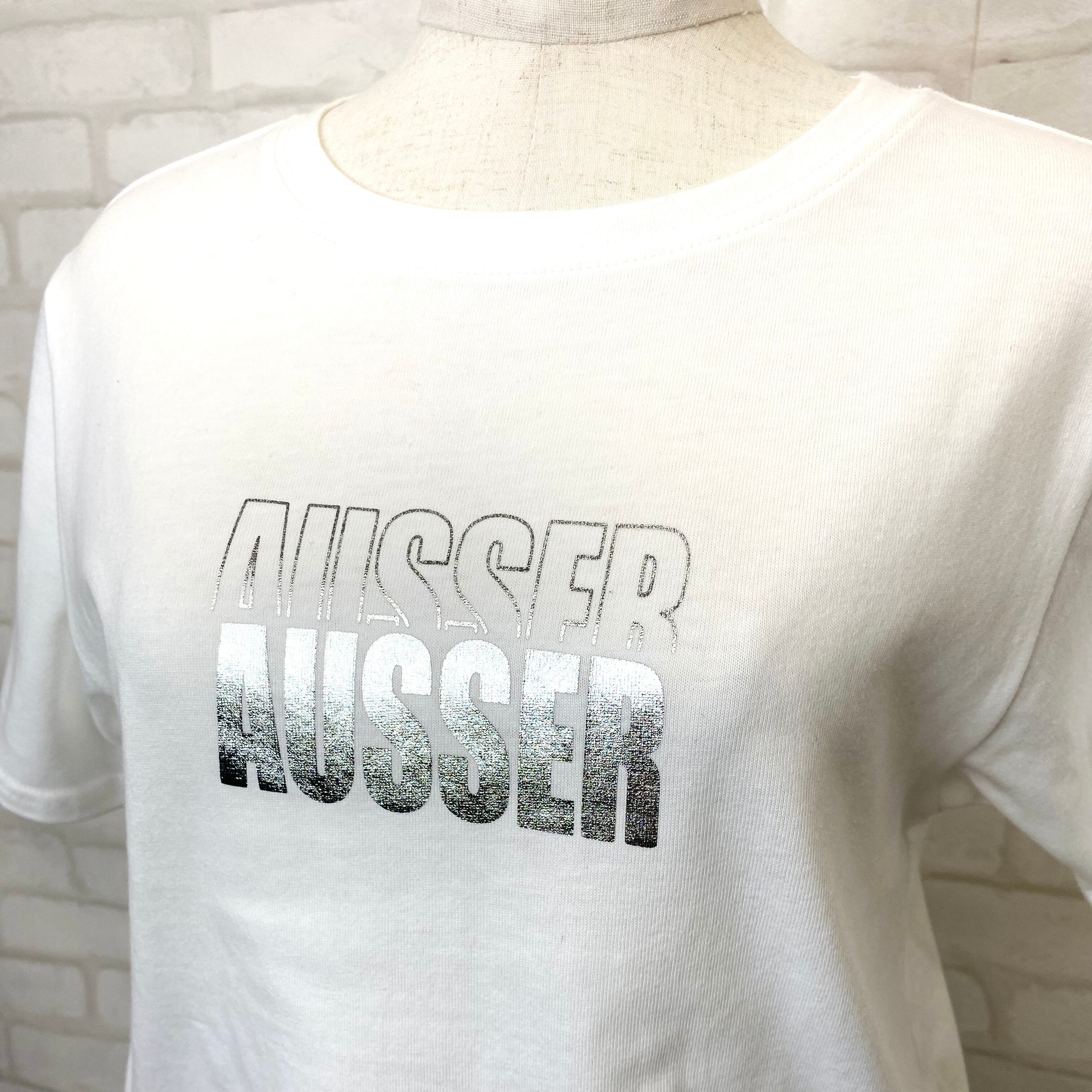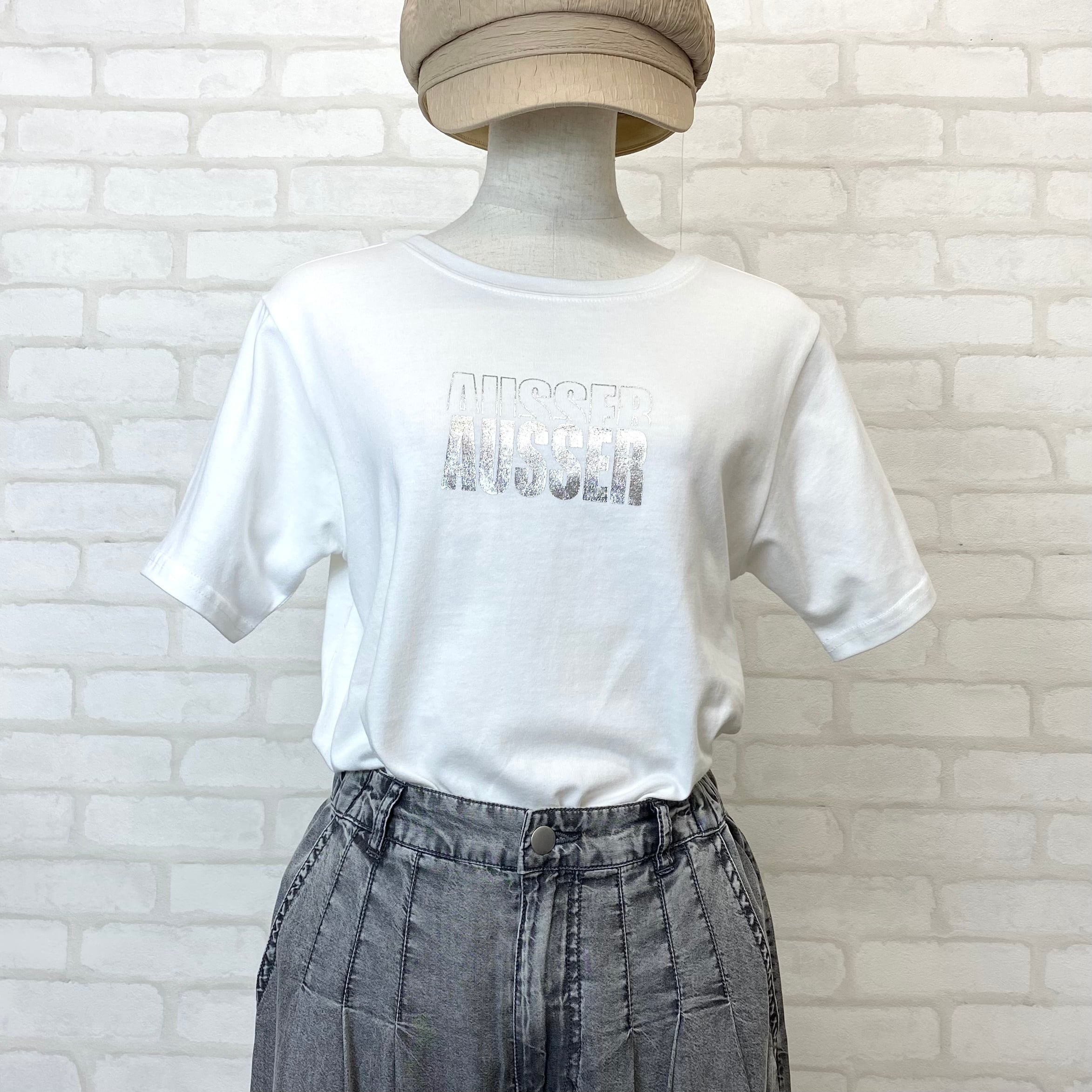 暑い夏の着回しに一役買う定番ロゴTが登場です。ポップな書体も エッジの効いたシルバーの箔プリントで幼さをカバーします。クリーンな印象のシンプルなシルエットで、大人女子に嬉しいミニマルなラウンドネックも好印象。ボディラインを強調しないサイジングで安心感があります。