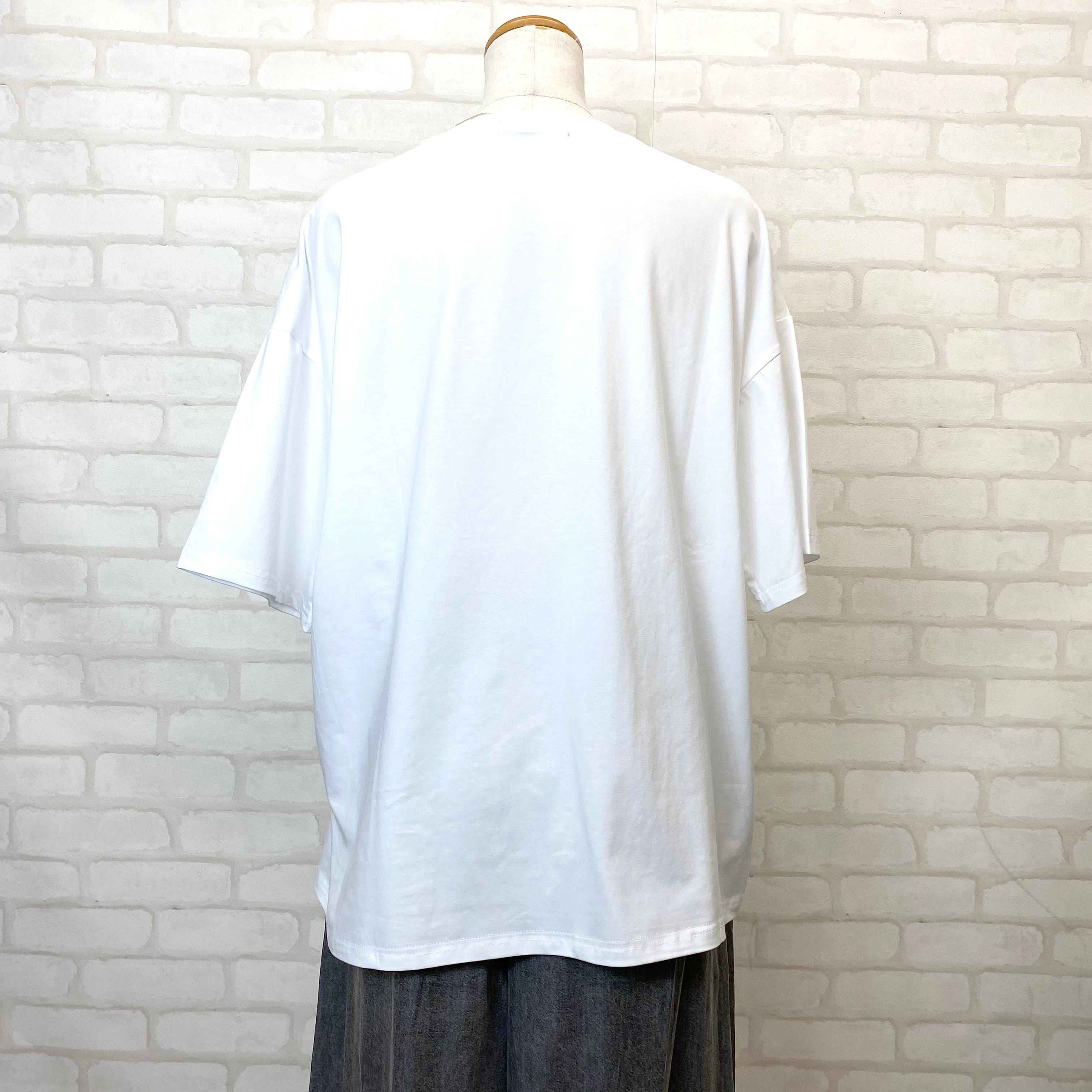 インパクトのある英字ロゴが視線を惹きつけるベーシックTシャツ。1枚着でもインナー使いでもサマになる美シルエットです。二の腕をカバーできる絶妙な長さの袖丈も嬉しいポイント!ゆるめのサイズ感でこなれた大人のカジュアルスタイルが完成します。