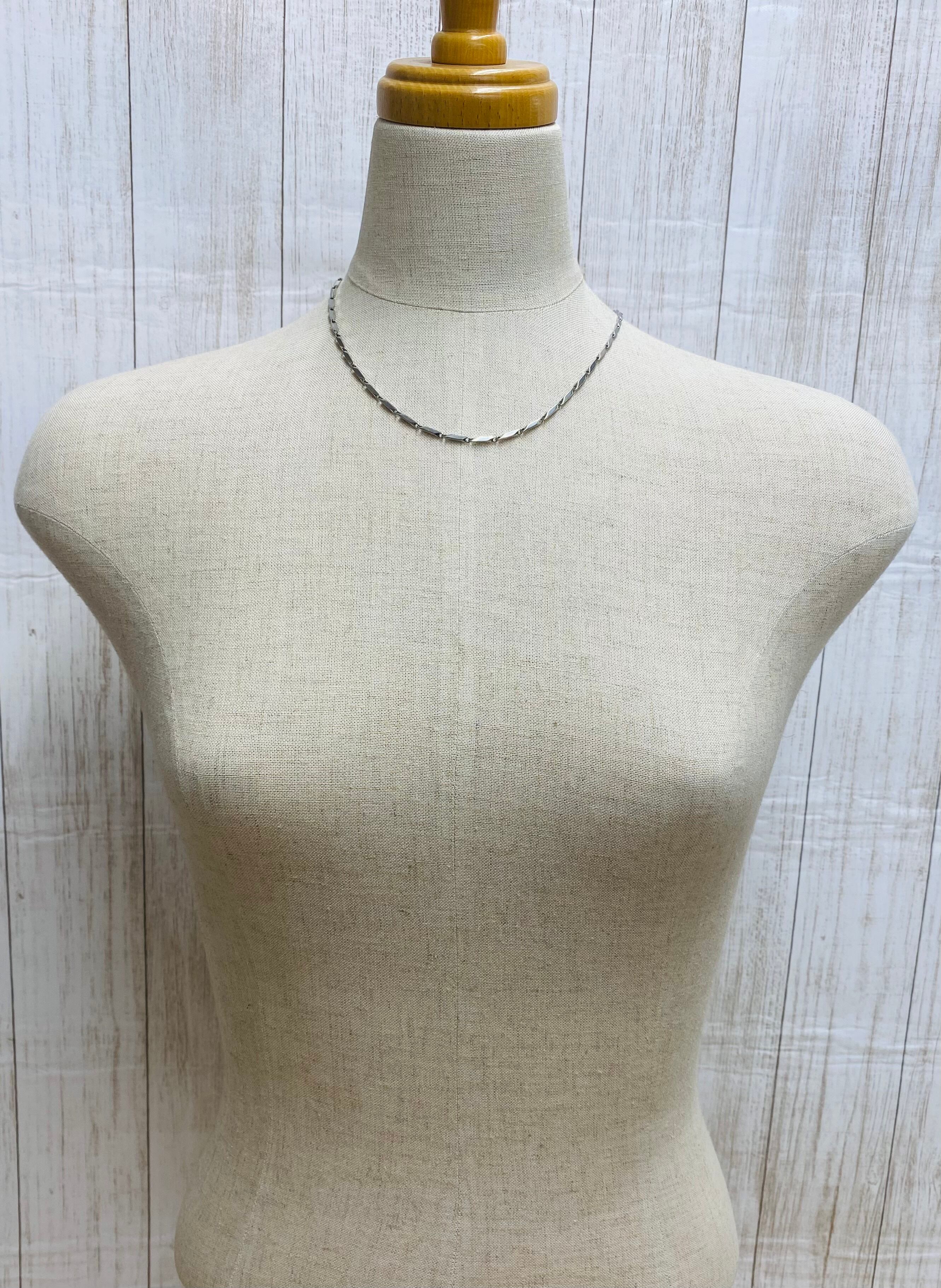 金属アレルギーを起こしにくく変色もしにくいサージカルスチールのシンプルなネックレスです。