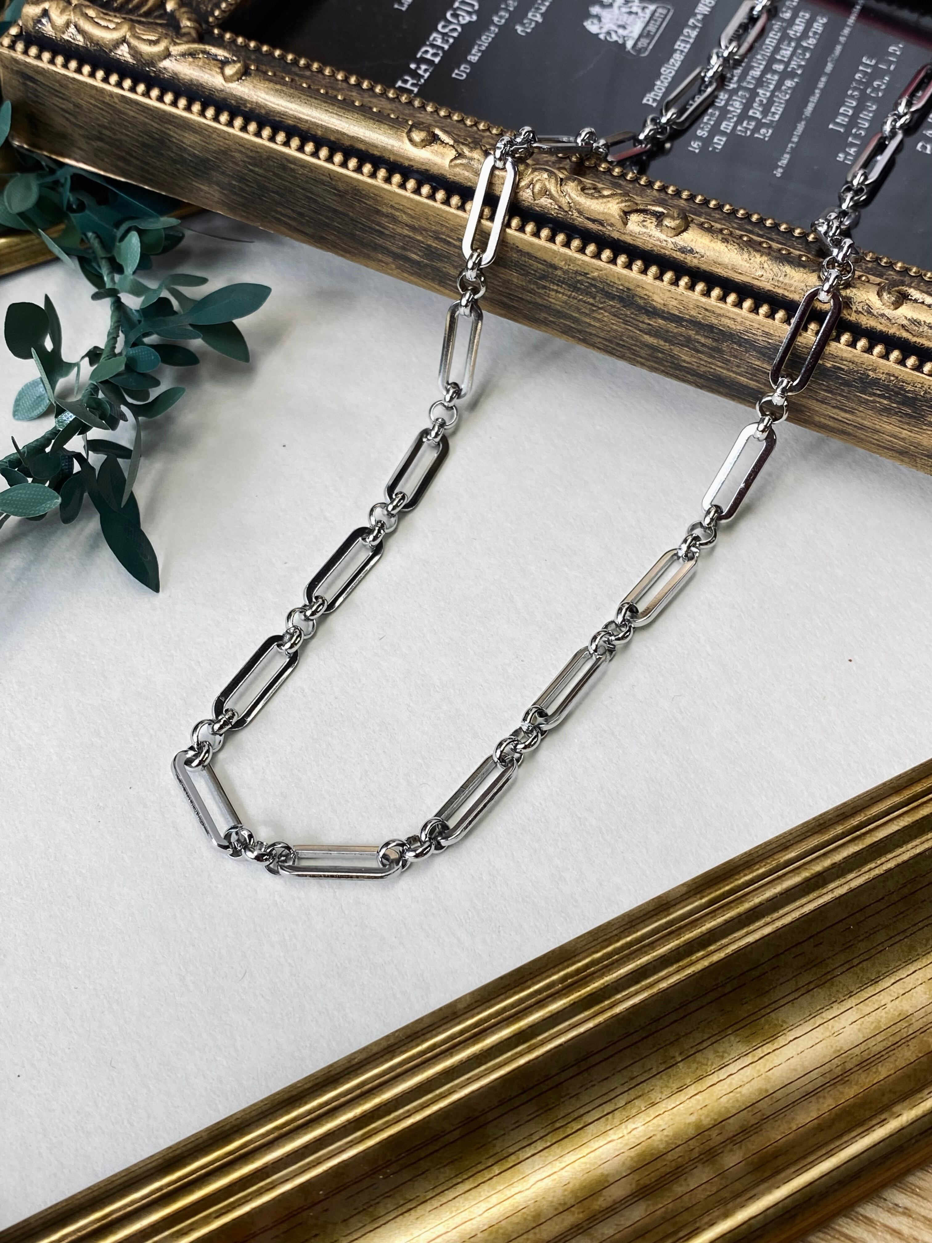 金属アレルギーを起こしにくく変色もしにくいサージカルスチールのスクエアチェーンネックレスです。