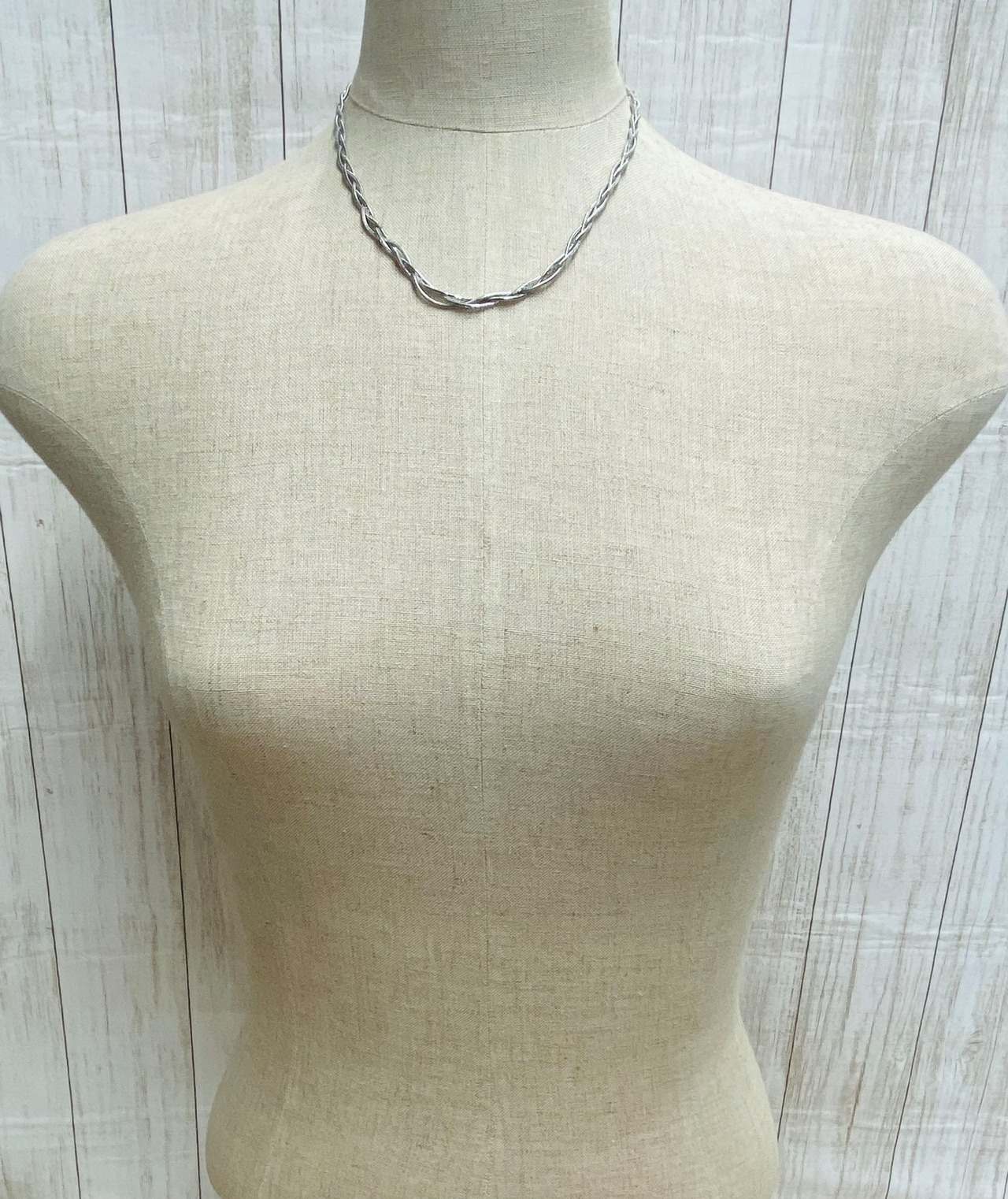 酸化による変色や腐食に強いステンレススチールのねじれデザインネックレスです。