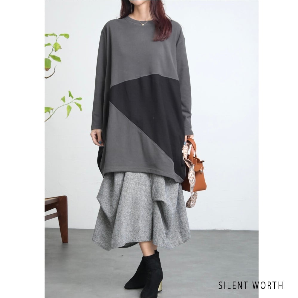 【SILENT WORTH】起毛カットバイカラービッグチュニック N-3027